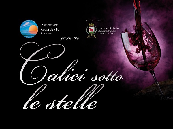 NARDO’ – L’Associazione Gust’ArTe con il sostegno e patrocinio del Comune di Nardò – Assessorato Agricoltura e Attività Produttive, presenta l’evento “”Calici sotto le Stelle” che si svolgerà sabato 23 agosto 2014 dalle ore 20.00 alle ore 24.00 nella splendida cornice della villa Comunale di Nardò.