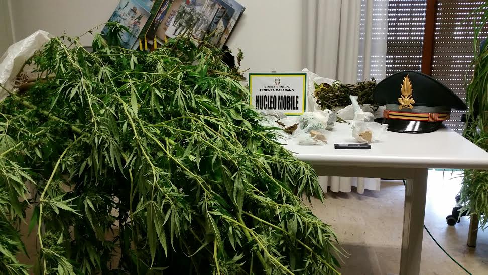 TAURISANO- Produzione, coltivazione e detenzione ai fini di spaccio di stupefacenti. Queste le accuse che hanno portato all’arresto di un 46enne di Taurisano, già noto.Durante una perquisizione in campagna, le fiamme gialle hanno rivenuto all’interno del suo podere sei piante di marijuana dell’altezza di quasi due metri. All’interno del suo casolare invece sono stati rinvenuti 300 grammi di eroina e marijuana, parte dei quali nascosti all’interno di un deposito di attrezzi agricoli e di una porcilaia.