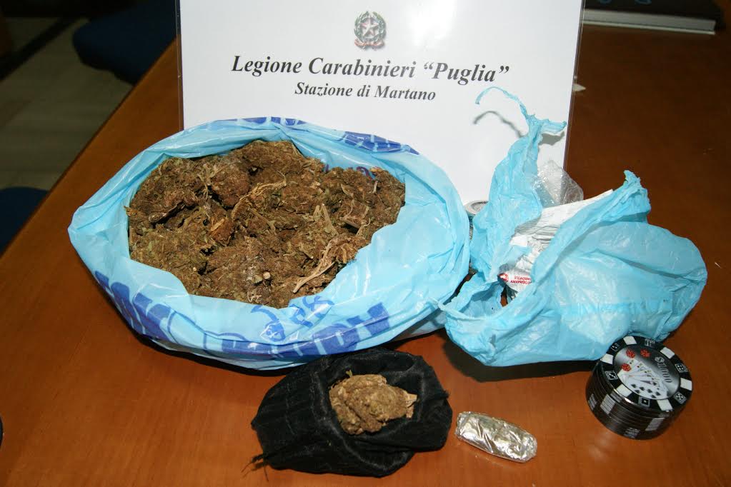 MARTANO- Nella sua cameretta con marijuana e vario materiale per il confezionamento delle dosi. A finire nei guai una studentessa di appena 15 anni.