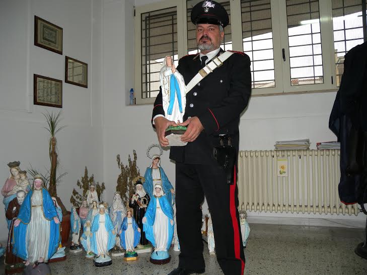 STERNATIA- Nonostante la denuncia per furto, la casalinga 42enne di Sternatia è tornata nuovamente in azione ed ha rubato altre due statue raffiguranti delle madonnine. E sono stati ancora una volta i carabinieri di Cutrofiano a scoprirla e a notificarle un’altra denuncia, questa volta per furto aggravato e continuato. Ai militari, che avevano condotto le indagini gli scorsi mesi, sono arrivate infatti altre segnalazioni. I militari, sospettando che la ladra di Madonne fosse tornata in azione, hanno avviato una serie di servizi di osservazione verso le abitazioni che ancora presentavano statue simili. Ieri sera la donna si è rifatta viva, sempre a bordo della stessa auto. È scesa, ha staccato da un’abitazione un’altra statua della Madonna e l’ha messa in macchina. I carabinieri l’hanno fermata e portata in caserma.