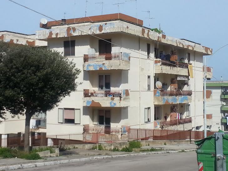 GALLIPOLI- Da cinque anni, questi balconi cadono a pezzi. Il ferro ormai è corroso dalla pioggia, l’intonaco ogni tanto viene giù all’improvviso, pericolosamente, com’è accaduto due settimane fa. Nella zona 167 di Gallipoli, pare essere sotto un bombardamento. Così vivono, in queste case popolari, 48 famiglie sulle 96 che popolano queste palazzine ex Iacp.