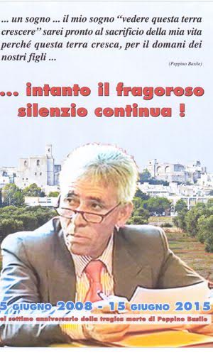 E, mentre non si è esclude che le indagini possano riaprirsi, c’è chi mai ha dimenticato e mai lo farà: il comitato civico “Io conto” interviene pubblicamente ad ogni anniversario -e non solo- della morte di Basile. Per chiedere giustizia. Questo è il manifesto che hanno realizzato, accompagnato da un comunicato in cui definiscono “una farsa” il modo in cui la vicenda è stata trattata. A partire dalla scena del delitto “dove chiunque ha potuto accedere senza ostacoli e passeggiarvi dentro; una farsa sono stati gli appelli al silenzio per “non disturbare le indagini”; a nessuno è venuto in mente di bloccare la raccolta dei rifiuti per la ricerca dell’arma del delitto; molto breve ci è sembrato il tempo passato tra l’omicidio, le indagini autoptiche ed il funerale, il tutto nell’arco di 52 ore circa, come se si volesse mettere subito un velo sulla vicenda.
