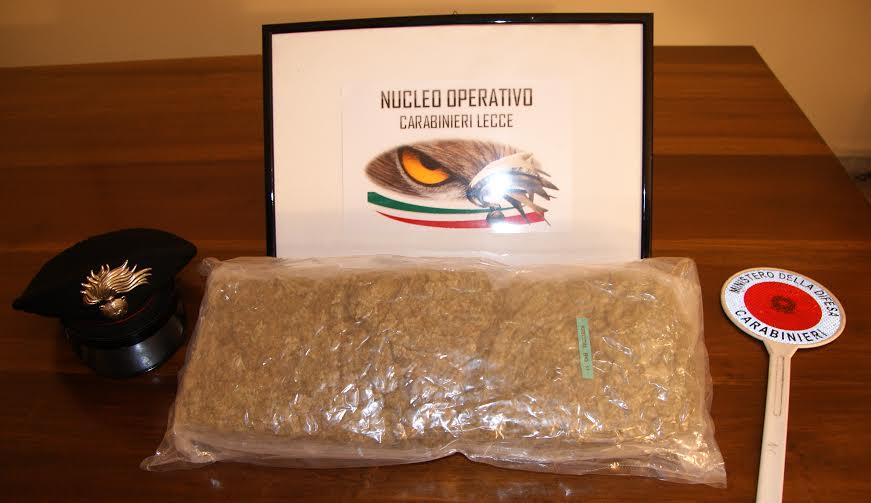COPERTINO- Viaggiavano in auto con un pacco da oltre un chilo di Marijuana i tre giovani di Copertino di 24, 27 e 28 anni fermati dai carabinieri durante un controllo stradale e poi arrestati. I tre, incensurati, sono incappati in un posto di controllo nei pressi dello svincolo della Tangenziale che immette sulla SS 101 in direzione Gallipoli. Erano nervosi, per questo i militari hanno deciso di perquisire il mezzo trovando la droga nascosta sotto il sedile anteriore lato passeggero.