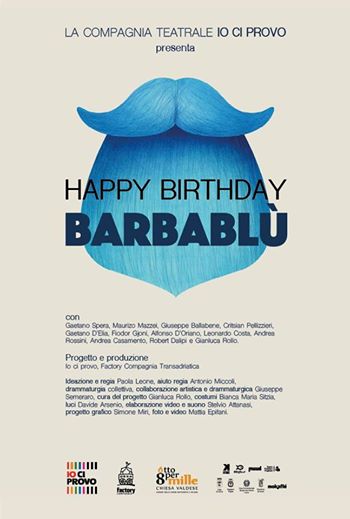 Inizierà alle 21:00 il loro spettacolo dal titolo “Happy birthaday Barbablù”, liberamente ispirato alla favola di Barbablù, progettato e prodotto da “Io ci Provo – Factory Compagnia Transadriatica”, sotto l’attenta regia di Paola Leone e del suo aiuto regia Antonio Miccoli.