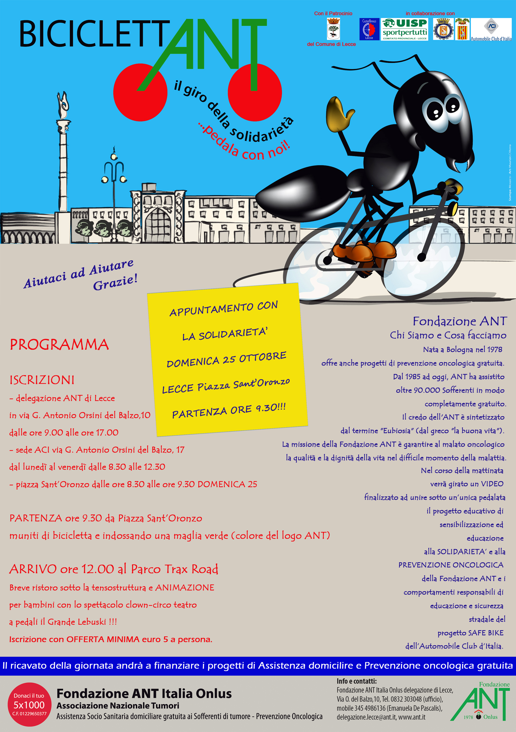 INFO – Delegazione ANT Italia Onlus Lecce , Via O. del Balzo 10 – www.ant.it