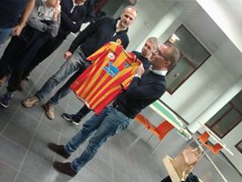 LECCE (di Carmen Tommasi) – Una bella sorpresa, un regalo speciale e delle emozioni forti: queste le sensazioni provate dall’avvocato Saverio Sticchi Damiani durante la consegna di una maglia, la prima da presidente dell’U.S. Lecce. Non una maglia come tutte, perché al numero uno di Piazza Mazzini brillano gli occhi quando prende tra le mani il gradito pensiero, che gli è stato consegnato dall’Old Club Subbuteo, con sede a Lecce in Via Vecchia Carmiano. Dove questa sera si è svolto un torneo “amichevole” tra tutti i più che soddisfatti presenti.