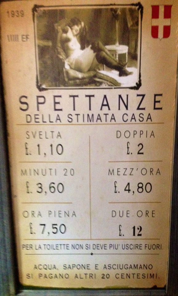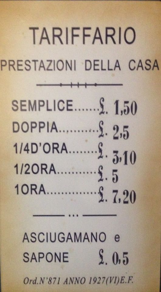 Nelle prima foto si nota il particolare “fallico” angolare, nella seconda com’era il civico 22 prima del cambio d’uso, ed infine due documenti dell’archivio storico e uno storico tariffario.