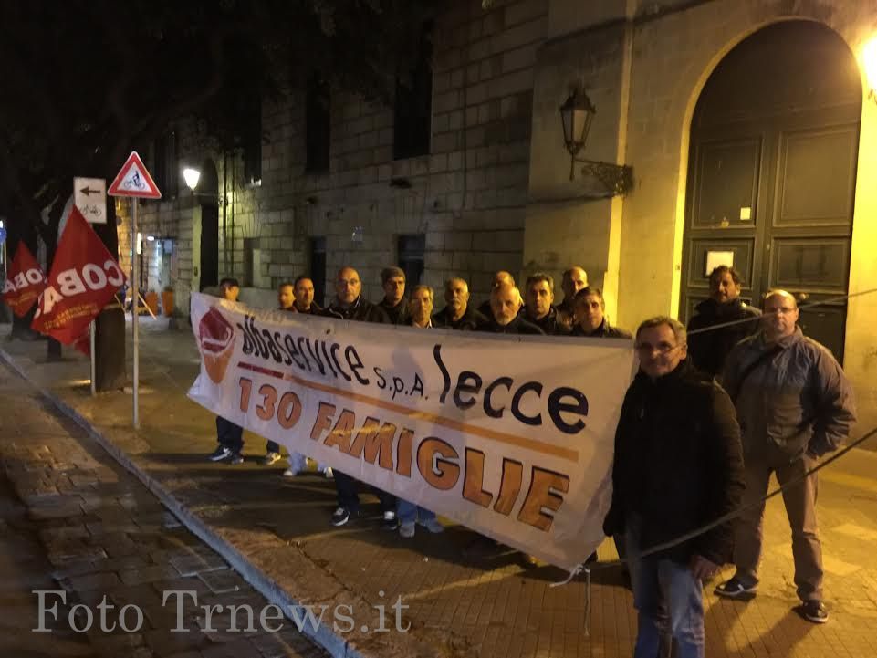 LECCE- La protesta di ieri sera ha dato i suoi frutti. I lavoratori di Alba Service sono riusciti ad ottenere un incontro in Prefettura per giovedì prossimo 19 novembre, alle ore 18. All’origine della manifestazione il loro disagio lavorativo: stipendi non pagati da 5 mesi e nessuna certezza sul loro futuro.