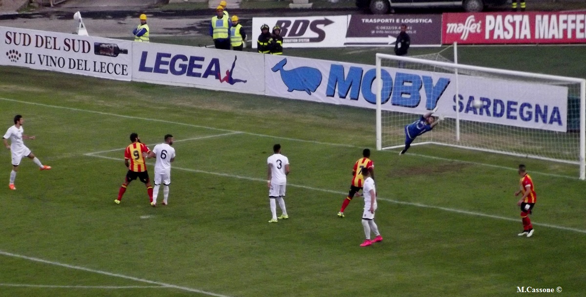 Parte forte il Lecce che dopo un minuto e 5 secondi va in gol con Moscardelli di testa, servito da Freddi che aveva ricevuto da Lepore, per l’arbitro però è fuorigioco. E continua a martellare la squadra di Braglia che al 5° costringe Perina all’uscita in tuffo nella sua area di rigore.