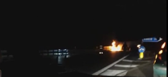 Una scena terrificante quella alla quale hanno assistito le decine di automobilisti che percorrevano la 101, trafficatissima in questi giorni di festa. Le fiamme, alte, hanno avvolto completamente il mezzo, alimentate dal carburante.