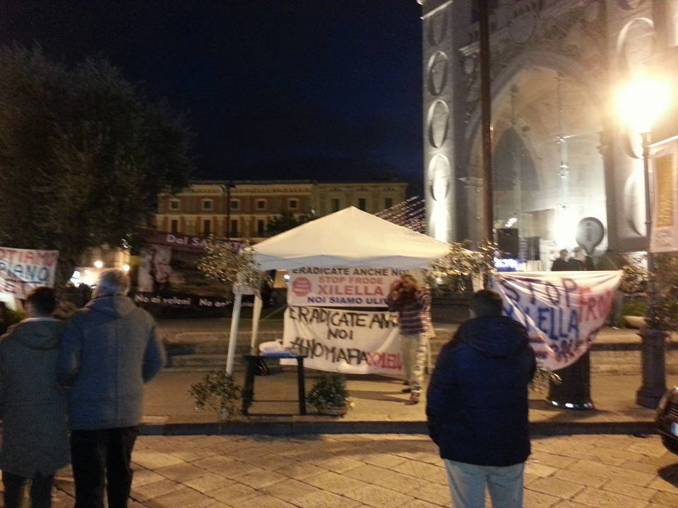 LECCE- Il Popolo degli ulivi nel cuore di Lecce, in piazza Sant’Oronzo, con uno stand informativo sugli ultimi sviluppi in merito alla calda questione della Xylella