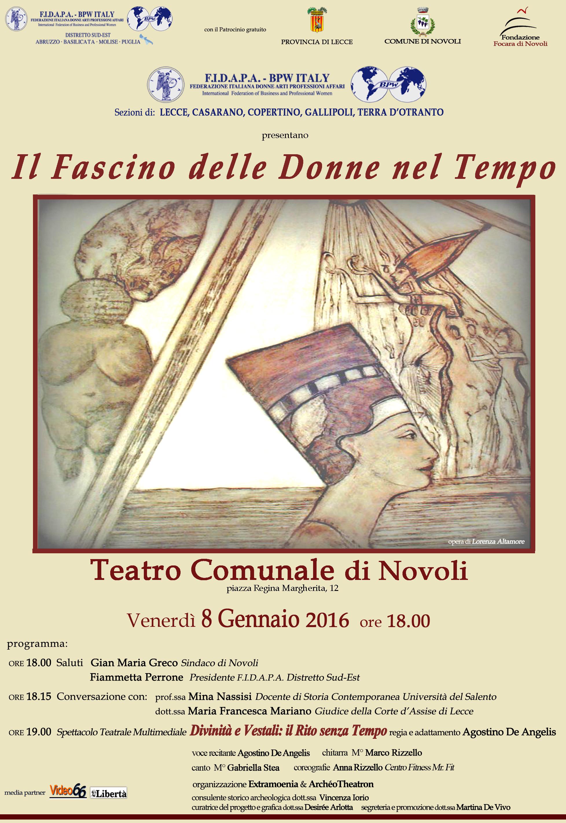 NOVOLI (di M.Cassone) – Potremmo definire l’evento di ieri, che si è tenuto presso il Teatro Comunale di Novoli, “uno spettacolo in due atti”. FIDAPA (federazione italiana, donne, arti, professioni, affari) ha organizzato il convegno “Il fascino delle donne nel tempo” che è stato moderato dalla giornalista Cecilia Leo; ci sono stati gli interventi del giudice della Corte d’Assise di Lecce Francesca Mariano e della docente universitaria, Mina Nassisi. Entrambe hanno posto in evidenza la figura della donna spesso vittima di una società retrograda che non sa valorizzarla per quello che merita.