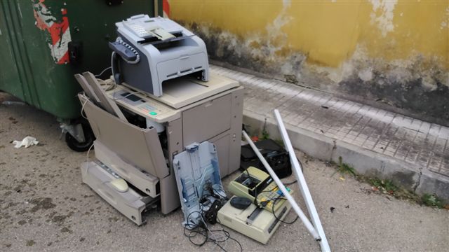 LECCE-Un pc, una stampante, una fotocopiatrice, un fax, un modem, due toner, due mouse ed una calcolatrice: sono rifiuti identificati con l’acronimo “RAEE” – rifiuti di apparecchiature elettriche e ed elettroniche –, particolarmente pericolosi perché contengono sostanze considerate tossiche. Eppure l’amministratore di una società, probabilmente nel corso di un rinnovo dell’ufficio, aveva gettato tutto nei cassonetti dei rifiuti solidi urbani. Una residente, però, se ne è accorta ed ha raccontato tutto alla polizia locale, che è intervenuta ed ha denunciato l’uomo.  Il responsabile ha provveduto tempestivamente alla bonifica del luogo, ma rischia ora la pena dell’arresto da sei mesi a due anni e dell’ammenda da 2600 a 26 mila euro.