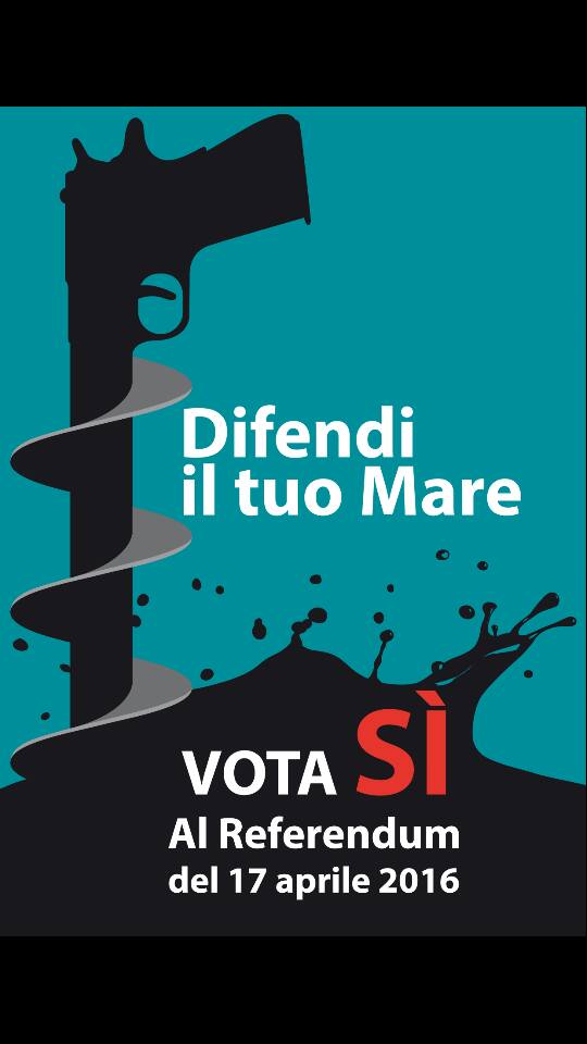 LECCE- Una pistola che punta verso il fondale e l’invito, deciso, ad andare a votare per il referendum del 17 aprile, crociando Sì per dire no alle trivelle.
