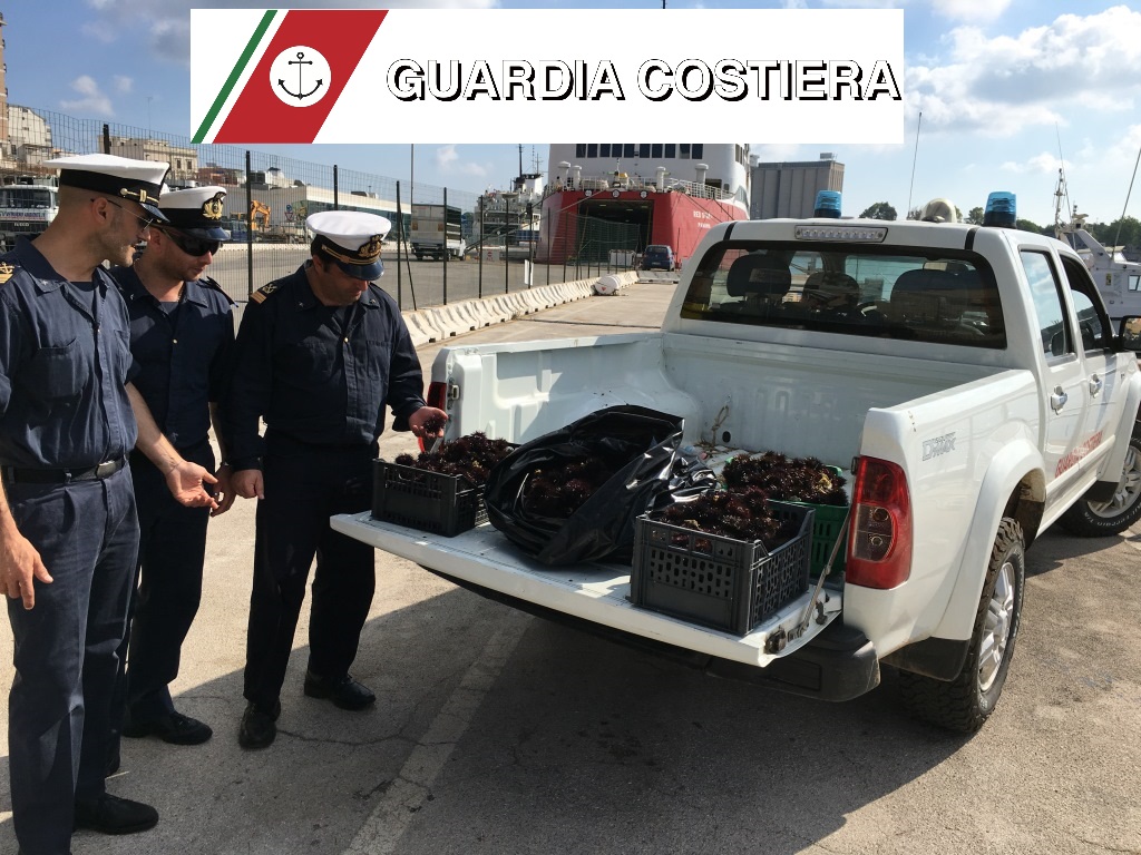 BRINDISI- Dalla Grecia a Brindisi con oltre 3.000 ricci. Maxi sequestro nel porto da parte del personale militare della Guardia Costiera e della Sezione di Polizia Marittima e Difesa Costiera della Capitaneria di Porto di Brindisi.