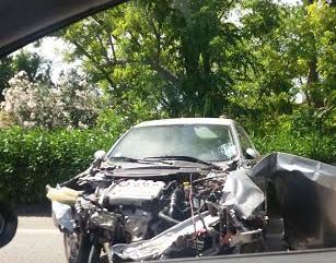 L’auto completamente distrutta. Per fortuna non si sono registrati feriti gravi.