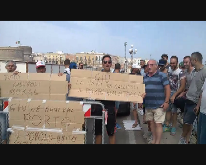 GALLIPOLI- Al grido di “Vogliamo il Porto libero, vogliamo lavorare” è iniziata la protesta questa mattina dei rappresentanti delle associazioni di pescatori, B&B del centro storico e associazioni varie che operano nel centro storico. La manifestazione, pacifica , si è tenuta presso il Porto di Gallipoli. Il motivo è la chiusura provvisoria dell’area portuale per i lavori dovuti ai parcheggi a pagamento. Non vogliamo repressioni-affermano i manifestanti- la libertà dev’essere tutelata. Chiediamo che vengano subito sospesi i lavori e si organizzi un tavolo tecnico con commissario straordinario, prefetto e sindaco per discutere della questione”.