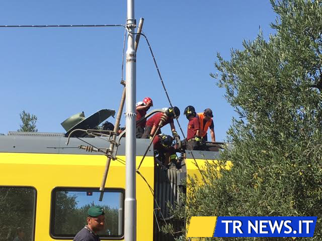 Si procede intanto con le identificazioni dei cadaveri. Tra questi, anche il macchinista Luciano Caterino, 37 anni, originario di Corato (Bari). Sono suoi i resti umani trovati a bordo del convoglio giallo, quello proveniente da Bari. L’uomo nell’impatto è rimasto dilaniato. L’altro convoglio era guidato da Pasquale Abbasciano, di Andria, l’altro macchinista di questa tragedia, anche lui deceduto nello scontro. L’equipaggio dei due treni era composto da un macchinista e da un capotreno per ogni convoglio.