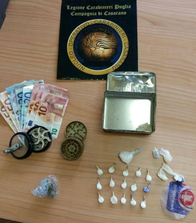 MATINO- E’ stato il fiuto del grano antidroga a scoperchiare il pentolone, in un’abitazione di Matino: all’interno di un cofanetto posto nelle scale che portano al terrazzo, 12 grammi di cocaina suddivisi in 16 dosi, 2 grammi di Marijuana e 2 grinder. Arrestato Vincenzo Costa, classe 63, del posto.