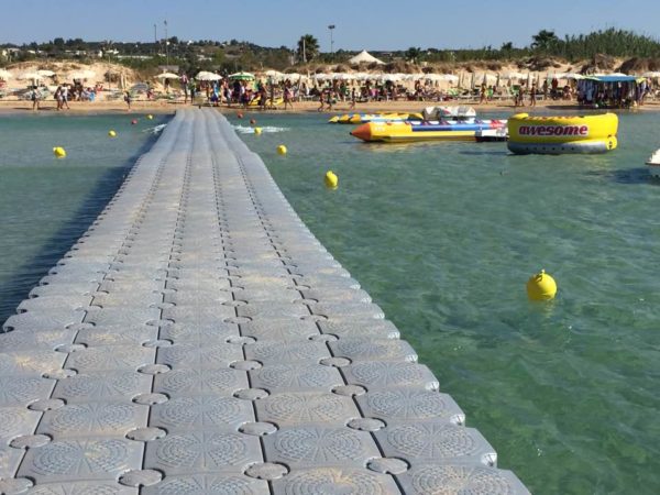 PESCOLUSE- Una passerella galleggiante, 4 passi immersi nell’infinito blu delle Maldive del Salento. Lo sguardo si perde all’orizzonte e a piedi nudi le sensazioni sono indescrivibili. Taglio del nastro anche alla presenza del Vescovo Angiuli. Dopo la passerella di Christo sul lago d’Iseo, anche nel Salento lungo la marina di Salve sarà possibile fare un giro sull’acqua.