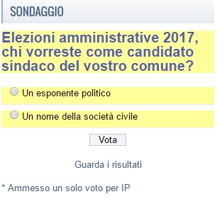LECCE- Voterete un partito tradizionale o un movimento civico, la coalizioni di centrodestra e quella di centrosinistra, siete incerti od andrete al mare? Ed ancora: sindaco del vostro comune preferireste un politico di professione od un esponente della società civile? Per rispondere a queste domande cliccate le risposte dei nostri sondaggi online sul sito di Telerama www.trnews.it
