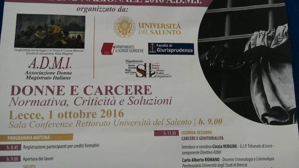 LECCE-Cultura e legge siedono intorno allo stesso tavolo per aprire una riflessione in tema detenzione femminile. Il 4% dei detenuti nelle carceri italiane sono infatti donne, una percentuale ridotta che testimonia statisticamente- spiegano- un basso tasso di pericolisità del gentil sesso.
