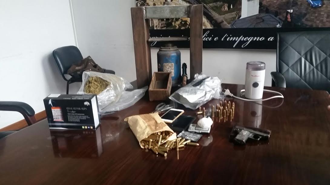 Oronzo Russo, di Surbo, è stato prima seguito da Lecce al suo paese e poi fermato dagli agenti della Squadra Mobile della Questura. Le indagini della sezione Criminalità Organizzata hanno portato a ritenere che il giovane potesse detenere delle armi. Per questo i poliziotti hanno proceduto con la perquisizione domiciliare, durante la quale hanno trovato una pistola cal. 22, illegalmente detenuta, 137 cartucce cal. 357, 22 cartucce cal. 9X21, 41 grammi di cocaina, 400 grammi di marijuana, 850 grammi di sostanza da taglio.