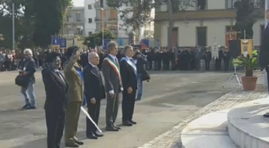 L’alzabandiera alla presenza di istituzioni e studenti, con l’ensamble dei fiati “Tito Schipa” e il coro dell’istituto superiore Calasso l’emozionante inno nazionale per quell’unità che tanto è costata, poi il silenzio militare. In apertura il ricordo del Gen. Armando Diaz, al Comando delle Forze Armate italiane, che il 4 novembre 1918 nel bollettino della Vittoria annunciava “una guerra vinta, nonostante un esercito inferiore per numero e per mezzi all’avversaria Austria-Ungheria”. Così Cesare Battisti, Fabio Filzi, Nazario Sauro assistevano alla realizzazione del proprio sogno. Il prezzo pagato era altissimo: oltre 4 milioni di soldati mobilitati di cui 250mila giovani appena diciottenni, 600mila morti, 1 milione e 500mila feriti, 400mila civili che 400mila civili che avevano abbandonato le proprie case sulla linea del fronte.