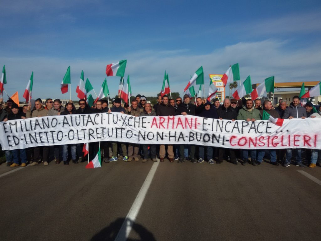 MAGLIE-LEUCA- “Rieccoci qua: dopo la pausa, causa forza maggiore, oggi nuovo blocco e manifestazione“. Tornano in strada, su quella strada per cui hanno perso il voro, la statale 275 Maglie-Leuca, gli operai della ditta Palumbo. Dopo l’emergenza neve, riprendono in mano gli striscioni e si mettono di traverso sull’asfalto della 275, altezza Scorrano.