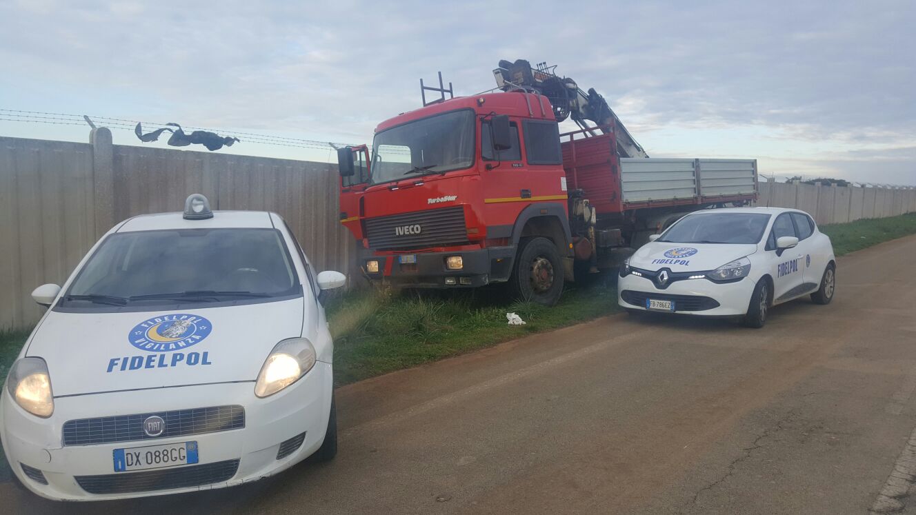 TORRE LAPILLO- Rinvenuto dalle guardie giurate dell’istituto di vigilanza FIDELPOL, questa mattina intorno alle 07,00 sulla strada che da Torre Lapillo porta ad Avetrana (alle spalle della pista prototipo), un camion con annessa una grossa gru. Le guardie giurate sono state subito insospettite dal fatto che lo sportello fosse aperto. Nell’abitacolo hanno notato che era rotto il blocchetto di accensione ed è stato quindi chiaro che si trattasse di un mezzo rubato. Di certo i ladri volevano usarlo per un grosso colpo, magari per sradicare sportelli bancomat o colonnine self service di distributori di carburante.  Indagano i carabinieri della Compagnia di Campi Salentina.