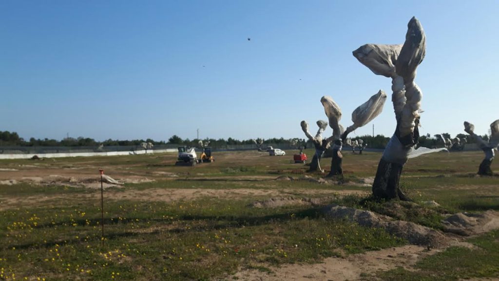 Nella prima mattinata, c’erano già decine di attivisti in contrada San Basilio: si era convinti del fatto che, al ritmo di mercoledì, sarebbero probabilmente bastate alla multinazionale ancora poche ore per trasferire i 59 ulivi rimasti (aldilà dei 16 monumentali su cui ancora non si hanno i permessi). Sì è all’erta.