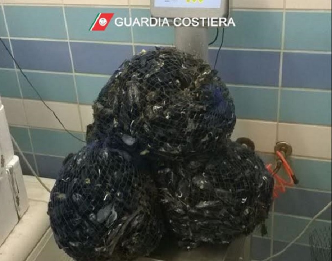 PORTO CESAREO- La Guardia Costiera di Porto Cesareo ha sequestrato circa 25 kg  di mitili e circa 35 kg di mussoli “Arca Noae” in quanto sono stati trovati all’interno di retine da pesca, nelle acque portuali, in evidente stato di cattiva conservazione. I militari, congiuntamente al personale medico dell’A.S.L., hanno proceduto al sequestro del pescato. Denunciato invece il responsabile.