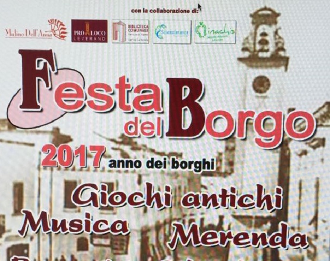 LEVERANO- “Festa del Borgo”, questo il nome della manifestazione, organizzata dall’assessorato alla Cultura in con la collaborazione della Pro Loco, che proprio domenica 23 aprile riscalderà il cuore di Leverano. Un evento nato per coinvolgere i più piccoli, per far loro assaporare i giochi di un tempo, la merenda che preparavano i nostri nonni, facendogli anche conoscere gli antichi mestieri. Sarà una domenica pomeriggio all’insegna  di giochi, divertimento e tradizione che accenderà tutto  il centro storico dalle 17.00 fino alle 20.30 circa, sotto l’occhio vigile di diversi esperti. Poi, ancora, passeggiata culturale tra i borghi e  la musica dei piccoli e talentuosi  Tamburellisti Di Otranto, che accompagnerà la manifestazione  in una  tavolata finale piena zeppa di prodotti tipici locali.