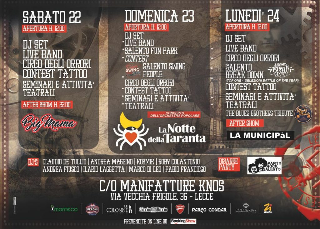 LECCE- Il sipario d’inchiostro alza il sipario su una tre giorni di Tattoo, musica, divertimento. Dal 23 al 24 aprile, Lecce Tattoo Fest vi aspetta presso le Manifatture KNOS, in via V. FRIGOLE. Sarà una tre giorni di divertimento, tattoo, spettacoli e tanta buona musica salentina insieme all’orchestra e al copro di ballo della Notte della Taranta. Ma non solo. Ad allietare una delle serate clou dell’evento anche il party di Big Mama, La Municipal e gli spettacoli dell’associazione Salento Swing Pepole e i performer del Circo degli orrori, capaci di far emozionare migliaia di spettatori.  testimonial dell’evento il modello e stilista Andrea Marcaccini.