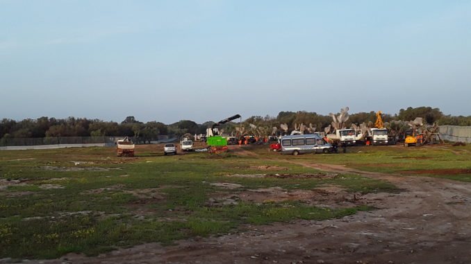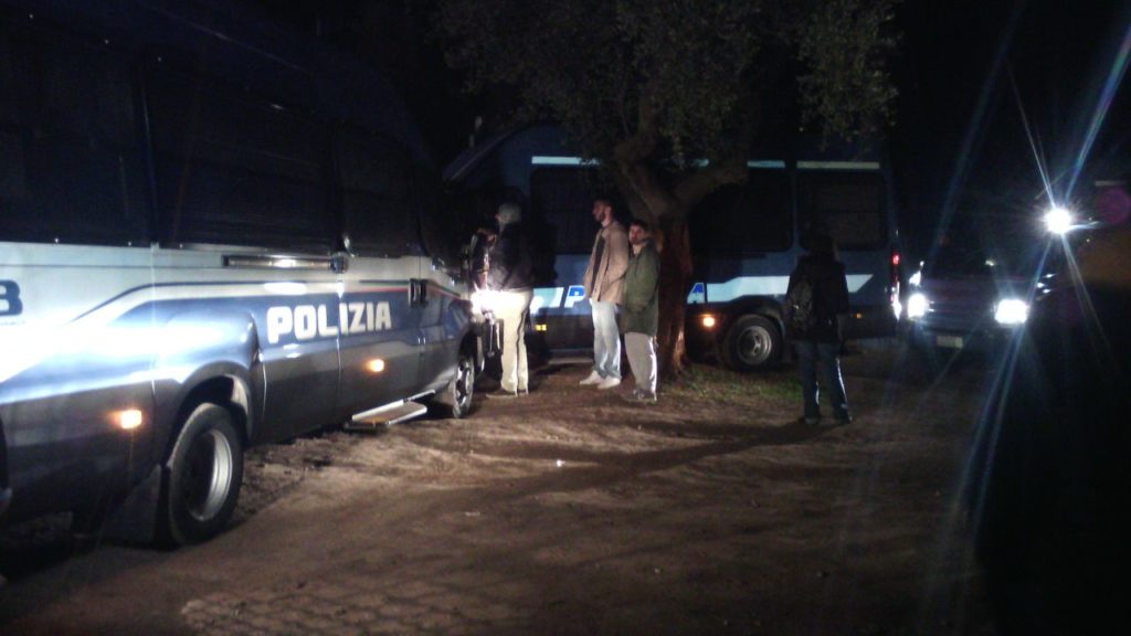MELENDUGNO – Nel cuore della notte, sono ripresi i lavori per l’espianto di undici ulivi nel cantiere del gasdotto Tap, nelle campagne di San Basilio, a Melendugno. Intorno alle 2, l’arrivo massiccio di forze dell’ordine per scortare i mezzi della multinazionale. Gli attivisti hanno denunciato di essere stati confinati nell’area del presidio, di fronte al cantiere. Alle 6 del mattino, le operazioni di invasamento delle piante sono state quasi ultimate. Alle 7.30, operai e agenti, circa duecento con rinforzi giunti anche da Napoli, sono andati via, tra i fischi e le urla dei manifestanti.