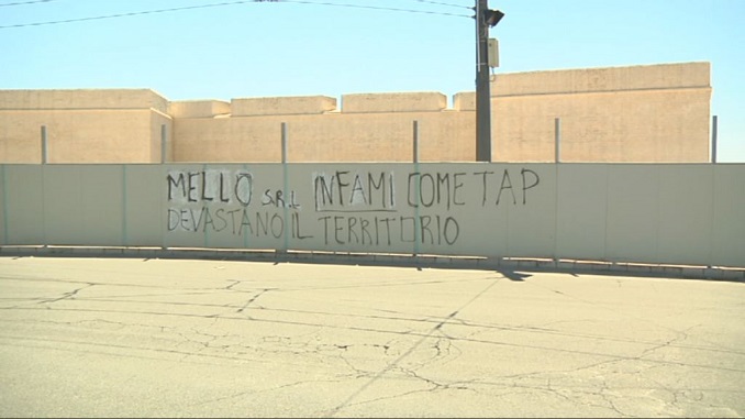 Non un’impresa qualunque: si tratta di una delle aziende impegnate nei lavori propedeutici alla realizzazione del gasdotto Tap a Melendugno. A dare più sostanza ai dubbi c’è un altro particolare: contro la stessa società che fa capo all’imprenditore Lucio Mello, sono apparse delle scritte con lo spray sulla recinzione del cantiere per i lavori di recupero delle mura urbiche, a Lecce, all’altezza del Bar Commercio. “Mello srl infami come Tap, devastano il territorio”, è il contenuto della scritta che però ha sbagliato bersaglio: l’azienda che si occupa del restauro è omonima, ma fa capo ad un altro imprenditore.