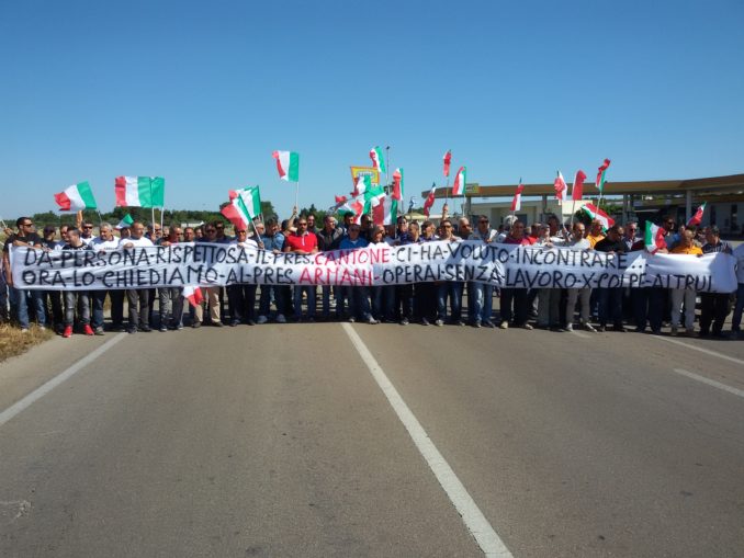 SCORRANO- Tornano in strada i lavoratori Palumbo riuniti nel comitato lavoratori Pro 275.  “Dopo l’incontro avuto con il presidente dell’Anticorruzione Cantone, durante il quale abbiamo espresso i nostri dubbi e paure per la decisione di Anas di una nuova gara d’appalto e le speranze nell’esito della sentenza del Consiglio di Stato. -dicono-  Oggi, decisi più che mai ad arrivare fino alla fine, nuova manifestazione, per chiedere nuovamente al Presidente della Regione Michele Emiliano, dopo l’invito a venire a trovarci (invito che fino ad oggi non ha avuto risposta), che sia adesso lui a invitare noi per un’incontro e vogliamo che questo nuovo appello non rimanga inascoltato perché siamo pur sempre cittadini, operai, ma soprattutto padri di famiglia appartenenti al territorio che lui in qualità di ”presidente” rappresenta”.
