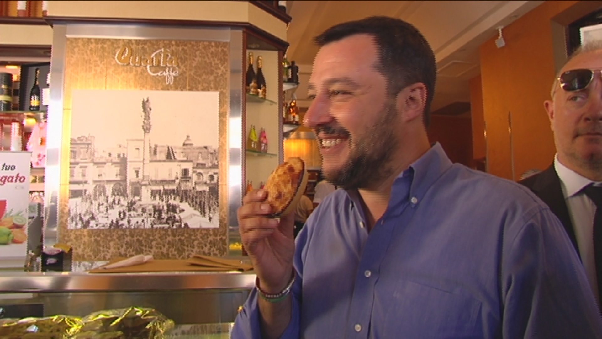 “Non aspetto né Bruxelles né Strasburgo -conclude- in caso di vittoria, faremmo ordine e pulizia in tutta Italia“. Dopo il suo intervento viene accompagnato in un tour nel centro storico, ne ammira le bellezze e come è solito fare si concede un break dal sapore nostrano.