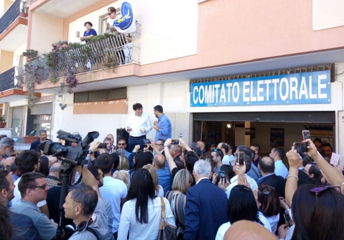 “Non aspetto né Bruxelles né Strasburgo -conclude- in caso di vittoria, faremmo ordine e pulizia in tutta Italia“. Dopo il suo intervento viene accompagnato in un tour nel centro storico, ne ammira le bellezze e come è solito fare si concede un break dal sapore nostrano.