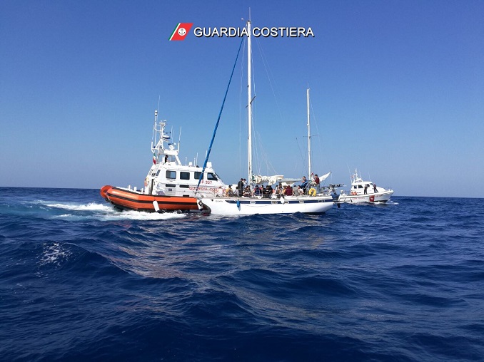 Sono stati loro stessi a lanciare l’allarme, alle 7.45, chiamando al numero telefonico di emergenza “112 europeo”. La Capitaneria di Porto all’opera per condurli a terra: ha disposto l’impiego di due motovedette assegnate all’Ufficio Locale Marittimo di Santa Maria di Leuca e di una motovedetta partita da Gallipoli, specificatamente attrezzata per i soccorsi d’altura e con condizioni meteo mare proibitive.
