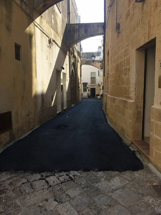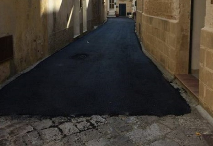 ALESSANO – Una foto ritrae una striscia di catrame sulle vecchie chianche del borgo antico di Alessano e scatena indignazione sul web. Ma la realtà è un’altra: l’accusa è falsa, perchè su quel tratto il basolato da tempo non c’era più. A dimostrarlo interviene direttamente la prima cittadina, con una foto che ritrae la zona in questione prima dei recenti lavori di alfaltatura.