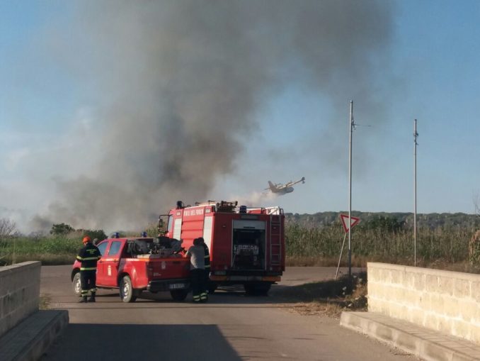GALATINA- Tra Galatina e Soleto, una densa colonna di fumo nero ha allarmato i cittadini che hanno allertato i vigili del Fuoco. In fiamme oltre a delle sterpaglie alcuni cassonetti in plastica accatastati nelle vicinanze di un capannone nella zona industriale. Il forte vento di tramontana ha fatto sì che le fiamme si propagassero velocemente, fino a raggiungere i cassonetti. Sul posto oltre a due squadre dei vigili del fuoco di Lecce e Maglie anche gli agenti di polizia che si sono preoccupati di agevolare il traffico veicolare reso difficoltoso dai seri problemi alla visibilità che il fumo aveva causato.