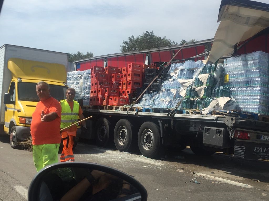 Immediato l’intervento sul posto  della Polizia stradale, della Guardia di Finanza, del personale dell’Anas e anche del 118 per soccorrere uno dei conducenti rimasto ferito, ma per fortuna non gravemente. Nel frattempo, il tratto in cui si è verificato il sinistro è rimasto chiuso generando code lunghe fino a 10 km. Per oltre un’ora si è così proceduto a passo d’uomo o almeno fino a quando il carico finito per strada è stato trabordato su un altro mezzo.