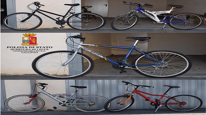 L’attività ha portato alla denuncia dell’uomo ed alla successiva restituzione delle biciclette agli aventi diritto, cinque ragazzi originari del Senegal e del Gambia, quasi tutti 20enni, arrivati ad Alezio due giorni prima del furto e che, con soddisfazione, hanno potuto riottenere il loro unico mezzo di trasporto e ringraziare, per questo, i poliziotti intervenuti.