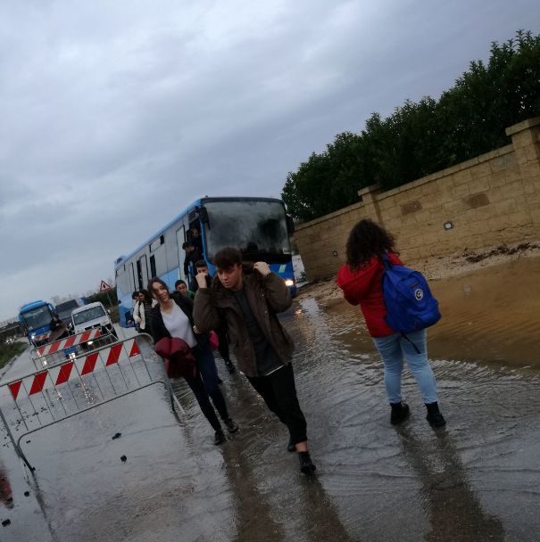 UGENTO – La pioggia caduta incessantemente in queste ore nel Salento e soprattutto nel basso Salento, ha fatto sì che un tratto della strada provinciale 72 Ugento – Casarano cedesse. In quel momento sull’arteria transitava un bus carico di studenti pendolari. Il terreno è letteralmente franato ed il mezzo è rimasto incastrato inclinadosi sul  lato sinistro. Probabilmente l’autista ha tentato di evitare le transenne che già segnalavano il tratto disconnesso nella zona. Tanta paura per i ragazzi a bordo, ma fortunatamente non si è registrato nessun ferito. L’episodio si è verificato nel primo pomeriggio. L’arteria è rimasta bloccata, sul posto sono intervenuti anche i Vigili del Fuoco