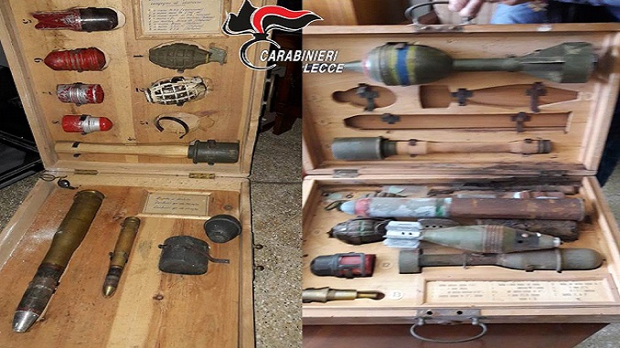 Erano sistemati in due cassette di legno chiuse e nascoste nello scantinato della scuola. Difficile dire da quanto tempo fossero lì. C’era di tutto, anche delle bombe a mano. Ordigni vecchi, forse chissà, oggetti da collezione, ma comunque potenzialmente pericolosi.