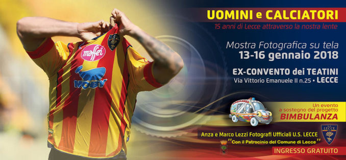 LECCE- Dal 13 al 16 gennaio si terrà, presso l’ex Convento dei Teatini (Via Vittorio Emanuele II n.25 a Lecce) la mostra fotografica su tela ad altezza uomo ad opera di Anza e Marco Lezzi, fotografi ufficiale US Lecce. Attraverso la mostra fotografica dal titolo “Uomini e Calciatori”, con ingresso gratuito, sarà possibile rivivere gli ultimi 15 anni di storia giallorossa, con scatti che immortalano non solo gesti tecnici dei calciatori, ma anche emozioni di uomini che hanno vissuto emozioni di gioie e delusioni. L’evento sarà a sostegno del progetto Bimbulanza.