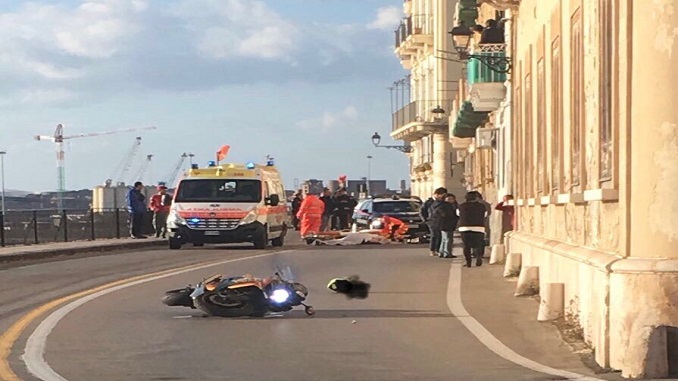 TARANTO – Tragico incidente stradale in città vecchia, a Taranto, lungo la cosiddetta “Ringhiera” del lungomare. Un uomo di 38 anni è morto. Era alla guida di una moto quando, per cause in corso di accertamento da parte della Polizia locale, ha perso il controllo del mezzo ed è caduto violentemente sull’asfalto. Sul posto un’ambulanza del 118, ma i soccorsi sono stati vani, l’uomo è morto sul colpo.