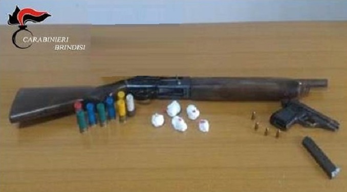 CELLINO SAN MARCO- In casa aveva un deposito di armi clandestine e droga. Per questo Raffaele Occhinero, 33 anni, è stato arrestato a Cellino San Marco dai carabinieri della locale stazione, per detenzione ai fini di spaccio di sostanze stupefacenti, detenzione illegale di armi clandestine da sparo con relativo munizionamento e ricettazione. All’interno di uno dei bagni della sua abitazione, sono stati rinvenuti un fucile a canne mozze con matricola abrasa, celato in un sacco nero di plastica del tipo utilizzato per la raccolta rifiuti, con 8 cartucce, di cui una in canna. Inoltre, in un cassetto di un mobile, una pistola calibro 7.65 con matricola abrasa con 4 proiettili. In un secondo bagno, all’interno di un mobile con specchiera, nascosti in un calzino, sono stati rinvenuti 45 gr. di cocaina suddivisa in 4 involucri di cellophane da 10 gr. ognuno e 1 da 5 gr. Ora Occhinero è in carcere a Brindisi.