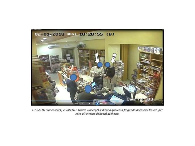 ALESSANO – In queste ore i Carabinieri di Alessano hanno notificato un’ordinanza di custodia in carcere ad Orazio Rocco Valente, 52enne di Ugento, ed hanno tratto in arresto Francesco Torsello 33enne, nato a Gagliano del Capo, ma residente ad Alessano. I due sono ritenuti, dagli investigatori, i responsabili della notte di terrore, vissuta lo scorso 2 gennaio dalla titolare di una tabaccheria del posto.